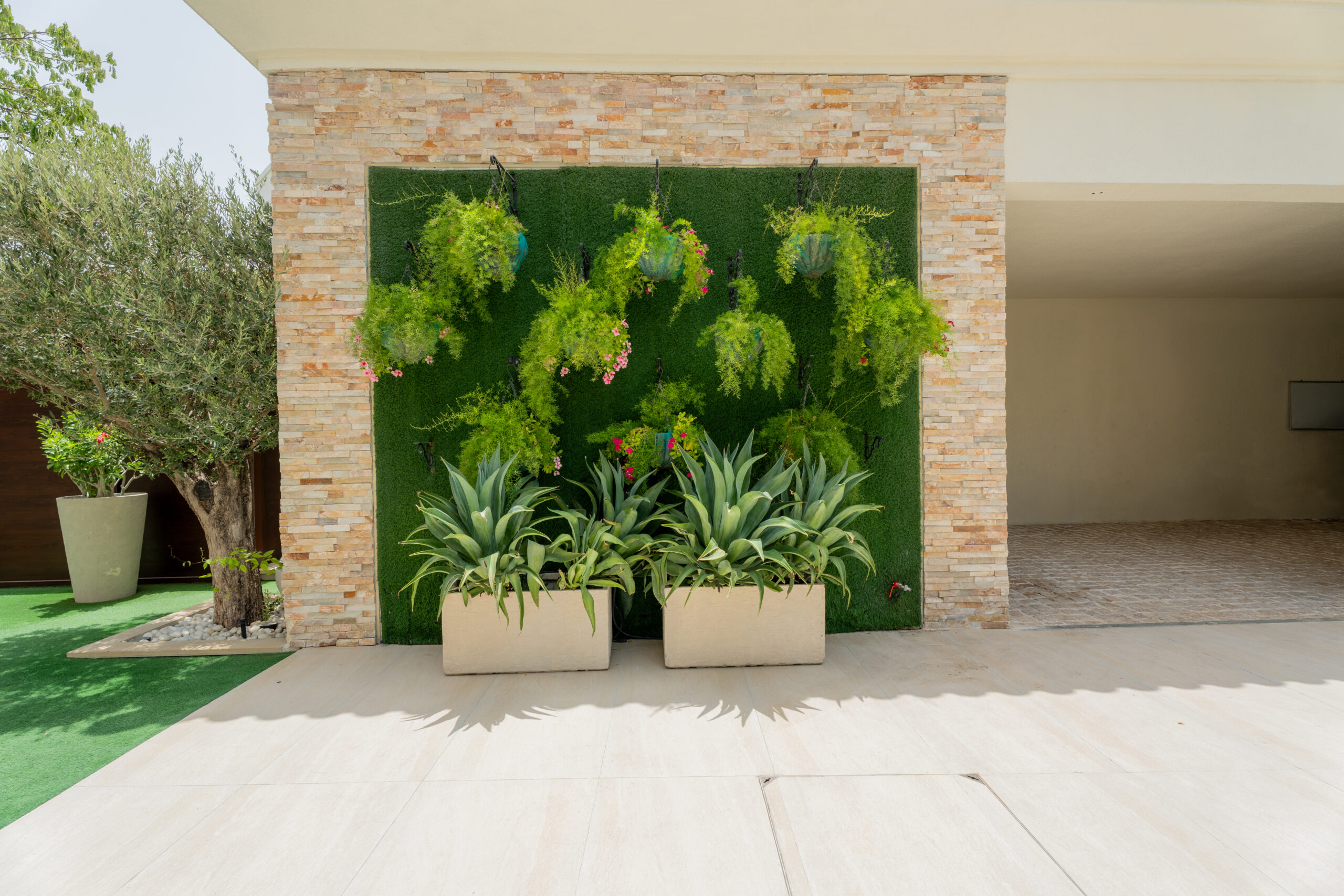 - Designing durable and stylish features such as stone pathways, tiled patios, pergolas, and decorative walls that add structure and functionality.